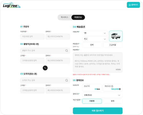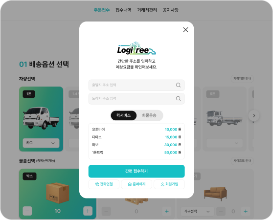 접수 전, 간단한 정보 입력만으로 예상 운송 요금을 미리 확인할 수 있어